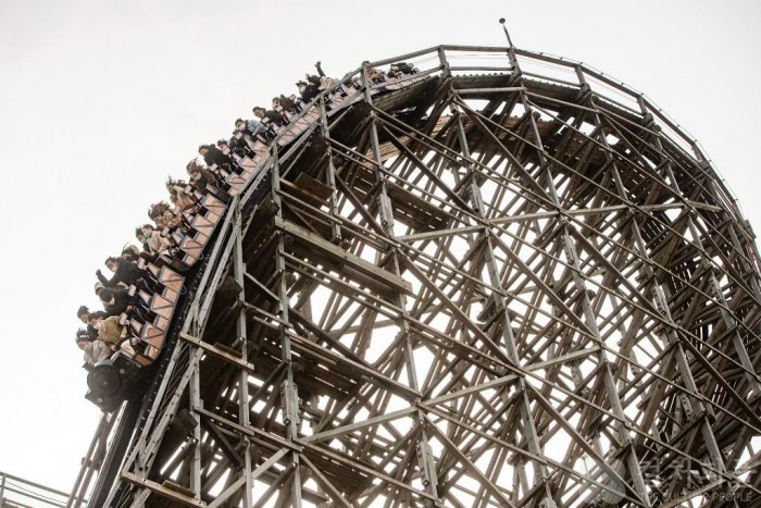 '티익스프레스'는 바퀴와 레일을 제외한 모든 시설이 나무로 만들어진 국내 최초의 우든코스터(Wooden Coaster)로, 최대 시속 104㎞, 낙하각도가 77도에 달하는 어트랙션이다.