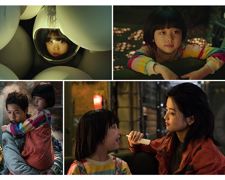 조성희 감독이 “사건을 일으키고 마무리하는 가장 핵심적인 인물”이라고 소개한 꽃님이는 우주개발기업 UTS에 의해 대량살상무기 로봇 ‘도로시’로 잘못 알려진 인물이다. 온 우주를 두려움에 떨게 한 위상과는 달리 티 없이 해맑은 모습으로 보는 이들의 마음을 무장해제시킨다. 승리호 선원들과의 찰떡 케미도 화제를 모으고 있다. 수거한 사고 우주정에서 ‘도로시’를 발견한 승리호 선원들, ’도로시’로 한 몫 단단히 챙겨 적자 인생을 청산하려 했지만 거리낌 없이 다가오는 꽃님이에게 어느새 마음이 열리고 만다. 예고편 속 재채기만 해도 폭탄이 터질까 노심초사했던 모습은 사라지고 꽃님이를 품에 안고 자상하게 눈을 맞추며 알뜰살뜰 챙기는 선원들의 모습이 미소를 자아낸다.
