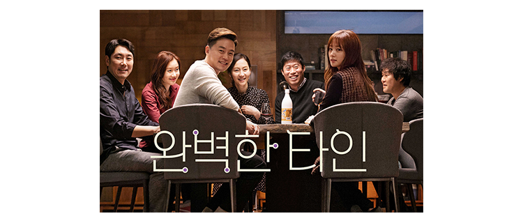 핸드폰의 잠금이 해제되는 순간 판도라의 상자가 열린다. <완벽한 타인>은 완벽해 보이는 커플 모임에서 한정된 시간 동안 핸드폰으로 오는 전화, 문자, 카톡을 강제로 공개해야 하는 게임 때문에 벌어지는 예측불허한 이야기를 그린 영화다. 드라마 [다모], [더 킹 투하츠], 영화 <역린>의 이재규 감독이 현대인의 사생활을 담은 ‘스마트폰’을 강제로 공개하는 게임을 소재로 웃음과 공감 그리고 스릴러를 방불케 하는 긴장감을 전한다. 유해진, 조진웅, 이서진, 염정아, 김지수, 송하윤, 윤경호가 신선한 소재에 맛깔나는 케미를 덧대며 테이블을 가득 채운다. 여기에 이순재, 라미란, 조정석, 조달환, 진선규 등 영화제를 방불케하는 특급 카메오들이 깜짝 목소리 연기로 풍성함을 더한다. 40년지기 친구로서, 부부로서 비밀이 없다고 자신했지만, 스마트폰이 울릴 때마다 예상치 못한 뒷담화부터 절대 드러나서는 안될 은밀한 사생활까지 온갖 비밀들이 쏟아지고 분위기는 날카롭게 고조된다. 언제 울릴지 알 수 없는 시한폭탄을 사수하기 위해 쉴 틈 없이 돌아가는 이들의 동공과 위기를 모면하기 위한 고군분투가 보는 이들마저 손에 땀을 쥐게 만든다. 비밀을 지키기 위한 총성 없는 전쟁터로 변해버린 만찬, 심장을 쫄깃하게 만드는 위험한 게임을 지금 바로 만나보자.