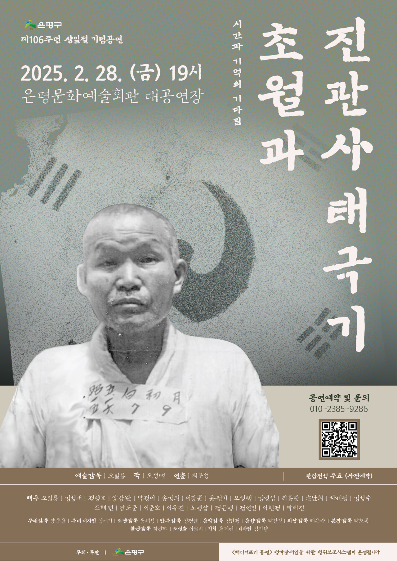 은평구가 주최·주관하는 연극 〈시간과 기억의 기다림, 초월과 진관사 태극기〉가 2월 28일 오후 7시 은평문화예술회관 대공연장에서 무료로 상연된다. 이번 작품은 불교계 대표 독립운동가 백초월 스님의 삶과 그가 펼친 범민중적 독립운동의 가치를 재조명하는 데 초점을 맞추고 있다.