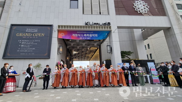 문화예술법인 쿠무다(이사장 주석 스님)는 12월9일 신축 건물에서 ‘복합명상문화센터 쿠무다 개원식’을 봉행했다. 이날 행사는 지하1층 공연장 석가모니불입상 및 옥상 하늘정원 백의관음보살좌상의 복장식(12월7일)과 점안식(12월8일)에 이어 진행됐다. 특히 3여 년에 걸쳐 진행된 불사에 물심양면 동참한 사부대중이 함께 감사와 찬탄을 공명하는 시간으로 마련됐다. 개원식 직후에는 클래식과 국악, 대중음악이 조화를 이루는 음악회를 개최해 쿠무다가 지닌 문화 포교 저변 확장의 원력을 새기는 장이 전개됐다.