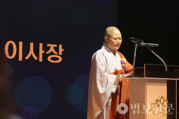 쿠무다 이사장 주석 스님은 인사말에서 다사다난했던 불사의 시간을 회상하며 한동안 말을 잇지 못했고 참석 대중은 박수로 격려를 보냈다.