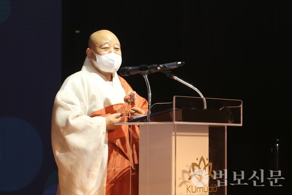 조계종 총무원장 원행 스님은 치사에서 “대원사 주지 주석 스님과 스님을 믿고 함께해 온 대중의 노력으로 오늘 쿠무다는 그 당당한 위용을 드러냈다”며 “쉼이 필요한 이들에게는 최상의 안식을 제공하고 정법과 위안의 가르침이 필요한 이들에게는 뉴미디어를 활용한 소통 창구가 될 것이며 감로의 다반으로 목마름과 허기를 채워주며 감동이 필요한 이들에겐 환희의 무대를 선사하여 새로운 시대를 열어가는 문화예술의 선도자로 자리매김하기를 기원한다”고 밝혔다.