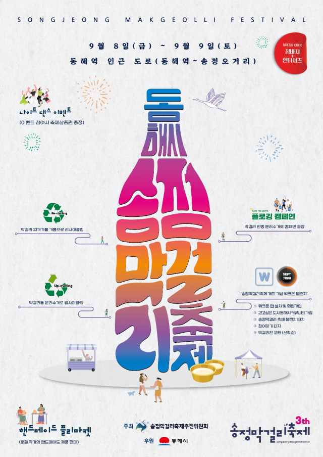 8~9일 동해역 광장 일원에서는 '송정막걸리 축제'가 개최된다. 송정 지역의 재도약을 위해 자연과 사람이 빚은 술 '막걸리'와 '송정'의 이야기·문화를 접목한 송정막걸리축제는 올해 3회째를 맞는다.