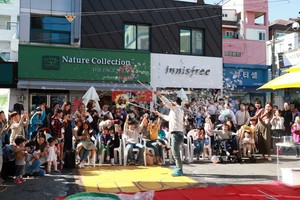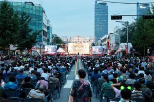 6월 29일 오후 2시, ‘2019 에코밸리커튼’ 개막을 축하하는 ‘마을과 마을을 문화로 잇는 우리동네 문화예술 축제’가 성남시의료원 앞 분수대 광장에서 열렸다. 축제 시작 전, 에코밸리커튼이 드리운 탄리로 131길부터 시민로 241번길까지 걸
