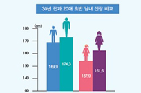 2017년 국민체력실태조사 결과, 20대는 체격은 커졌으나 유연성, 순발력, 상대근력이 저하된 것으로 나타났다. 반면 중장년층은 심폐지구력과 근력이 향상되었으며, 노년층 또한 하체 근력과 보행 능력이 개선되었다.