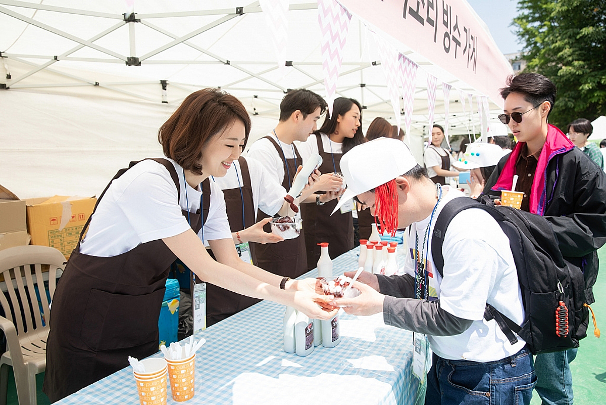경기도 의왕시 계원예대에서 9일 열린 아이소리축제에서 봉사활동을 하고 있는 파라다이스복지재단 최윤정 이사장(왼쪽)/사진=파라다이스그룹 파라다이스 (16,750원 ▼270 -1.59%) 그룹이 지원하는 파라다이스복지재단과 계원예술대학교가 장애·비장애 청소년이 함께하는 문화예술의 장 ‘아이